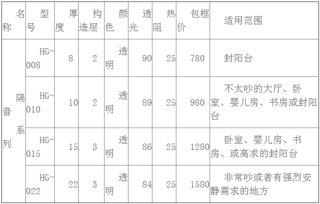 以下是DOK隔音窗隔音玻璃按平方米計算的報價,此價格包含了窗框和安裝費,不另收其他費用。現將隔音玻璃(隔音、鋼化隔音、采光隔音、廚衛隔音)、隔熱玻璃、隔音隔熱玻璃三大系列的各種產品型號、結構、性能、適用范圍以表格的形式介紹如下:寧波隔音門窗
