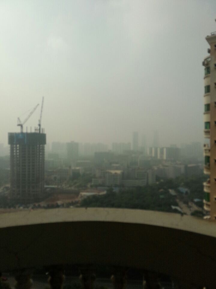 上圖為室外的空氣現狀,可以清晰的看到,天空霧蒙蒙的,直觀的表現出空氣質量的問題。